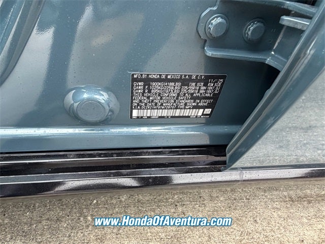 Honda of Aventura is proud to present you with another True Market Priced Vehicle. This 2026 Honda HR-V EX-L is loaded with the following Factory Options: 18 Machine-Finished Alloy Wheels, 4-Wheel Disc Brakes, 8 Speakers, ABS brakes, Adaptive Cruise Control: Adaptive Cruise Control (ACC) with Low-Speed Follow, Air Conditioning, Alloy wheels, AM/FM radio, Apple CarPlay/Android Auto, Auto High-beam Headlights, Auto-dimming Rear-View mirror, Automatic temperature control, Blind Spot Information (BSI) System warning, Brake assist, Bumpers: body-color, Compass, Delay-off headlights, Driver door bin, Driver vanity mirror, Dual front impact airbags, Dual front side impact airbags, Electronic Stability Control, Exterior Parking Camera Rear, Four wheel independent suspension, Front anti-roll bar, Front Bucket Seats, Front Center Armrest, Front dual zone A/C, Front reading lights, Fully automatic headlights, Heated door mirrors, Heated Front Bucket Seats, Heated front seats, Illuminated entry, Knee airbag, Leather Shift Knob, Leather steering wheel, Leather-Trimmed Seats, Low tire pressure warning, Occupant sensing airbag, Outside temperature display, Overhead airbag, Panic alarm, Passenger door bin, Passenger vanity mirror, Power door mirrors, Power driver seat, Power moonroof, Power steering, Power windows, Radio data system, Radio: 180-Watt Audio System with 8 Speakers, Rear anti-roll bar, Rear reading lights, Rear side impact airbag, Rear window defroster, Rear window wiper, Remote keyless entry, Security system, Speed control, Speed-sensing steering, Split folding rear seat, Spoiler, Steering wheel mounted audio controls, Tachometer, Telescoping steering wheel, Tilt steering wheel, Traction control, Trip computer, Turn signal indicator mirrors, and Variably intermittent wipers!! Recent Arrival! 26/32 City/Highway MPG
