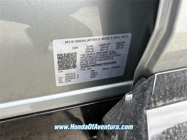 Honda of Aventura is proud to present you with another True Market Priced Vehicle. This 2026 Honda Prologue Touring is loaded with the following Factory Options: 12 Speakers, 19 x 8.5 Alloy Wheels, 4-Wheel Disc Brakes, ABS brakes, Air Conditioning, Alloy wheels, AM/FM radio: SiriusXM, Apple CarPlay/Android Auto, Auto High-beam Headlights, Auto-dimming Rear-View mirror, Automatic temperature control, Bose Premium Audio System, Brake assist, Bumpers: body-color, Compass, Delay-off headlights, Driver door bin, Driver vanity mirror, Dual front impact airbags, Dual front side impact airbags, Electronic Stability Control, Emergency communication system: HondaLink connected by OnStar, Exterior Parking Camera Rear, Four wheel independent suspension, Front anti-roll bar, Front Bucket Seats, Front Center Armrest, Front dual zone A/C, Front fog lights, Front reading lights, Fully automatic headlights, Garage door transmitter: HomeLink, Heated door mirrors, Heated Front Bucket Seats, Heated front seats, Illuminated entry, Knee airbag, Lane departure: Lane Keeping Assist System (LKAS) active, Leather Seat Trim, Leather steering wheel, Low tire pressure warning, Memory seat, Navigation System, Occupant sensing airbag, Outside temperature display, Overhead airbag, Overhead console, Panic alarm, Passenger door bin, Passenger vanity mirror, Power door mirrors, Power driver seat, Power Liftgate, Power moonroof, Power passenger seat, Power steering, Power windows, Rear anti-roll bar, Rear reading lights, Rear seat center armrest, Rear window defroster, Rear window wiper, Remote keyless entry, Speed control, Split folding rear seat, Spoiler, Steering wheel mounted audio controls, Telescoping steering wheel, Tilt steering wheel, Traction control, Trip computer, Turn signal indicator mirrors, and Variably intermittent wipers!! 113/94 City/Highway MPG