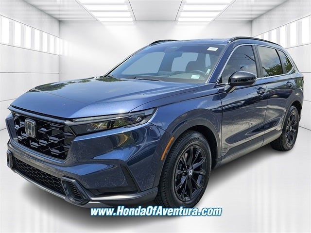 Honda of Aventura is proud to present you with another True Market Priced Pre-Owned Vehicle. This 2023 Honda CR-V Hybrid Sport HondaTrue Certified is loaded with the following Factory Options: 2.0L I4 DOHC 16V HondaTrue Certified Certified, 2.0L I4 DOHC 16V, 4-Wheel Disc Brakes, 4.438 Axle Ratio, 6 Speakers, ABS brakes, Adaptive Cruise Control: Adaptive Cruise Control (ACC) with Low-Speed Follow, Air Conditioning, Alloy wheels, Apple CarPlay/Android Auto, Auto High-beam Headlights, Automatic temperature control, Brake assist, Bumpers: body-color, Cloth Seat Trim, Compass, Delay-off headlights, Driver door bin, Driver vanity mirror, Dual front impact airbags, Dual front side impact airbags, Electronic Stability Control, Exterior Parking Camera Rear, Four wheel independent suspension, Front anti-roll bar, Front Bucket Seats, Front Center Armrest, Front dual zone A/C, Front reading lights, Fully automatic headlights, Heated door mirrors, Heated Front Bucket Seats, Heated front seats, Illuminated entry, Knee airbag, Leather Shift Knob, Leather steering wheel, Low tire pressure warning, Occupant sensing airbag, Outside temperature display, Overhead airbag, Overhead console, Panic alarm, Passenger door bin, Passenger vanity mirror, Power door mirrors, Power driver seat, Power moonroof, Power steering, Power windows, Radio data system, Radio: 240-Watt AM/FM Audio System, Rear anti-roll bar, Rear reading lights, Rear seat center armrest, Rear side impact airbag, Rear window defroster, Rear window wiper, Remote keyless entry, Security system, Speed control, Speed-sensing steering, Speed-Sensitive Wipers, Split folding rear seat, Spoiler, Steering wheel mounted audio controls, Telescoping steering wheel, Tilt steering wheel, Traction control, Trip computer, Turn signal indicator mirrors, Variably intermittent wipers, and Wheels: 18 Berlina Black Alloy!!