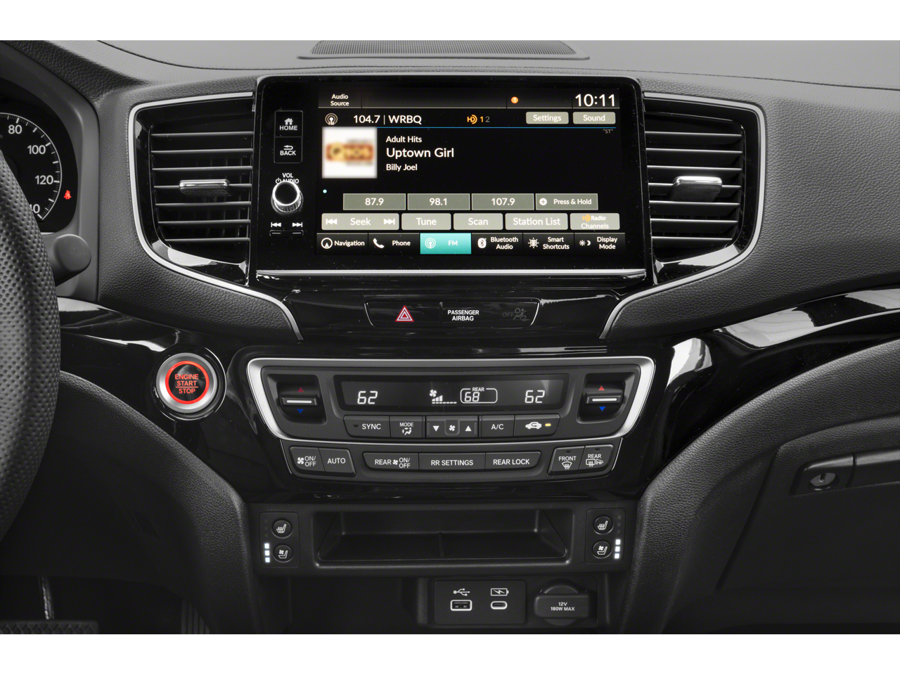 - Radio: 540-Watt Premium Audio System w/8 Speakers -inc: subwoofer, 9" color touchscreen, Bluetooth® streaming audio, Speed-Sensitive Volume Compensation (SVC), wireless Apple CarPlay/Android Auto compatibility, HD Radio, 2.5A USB-A data port in front console and HondaLink